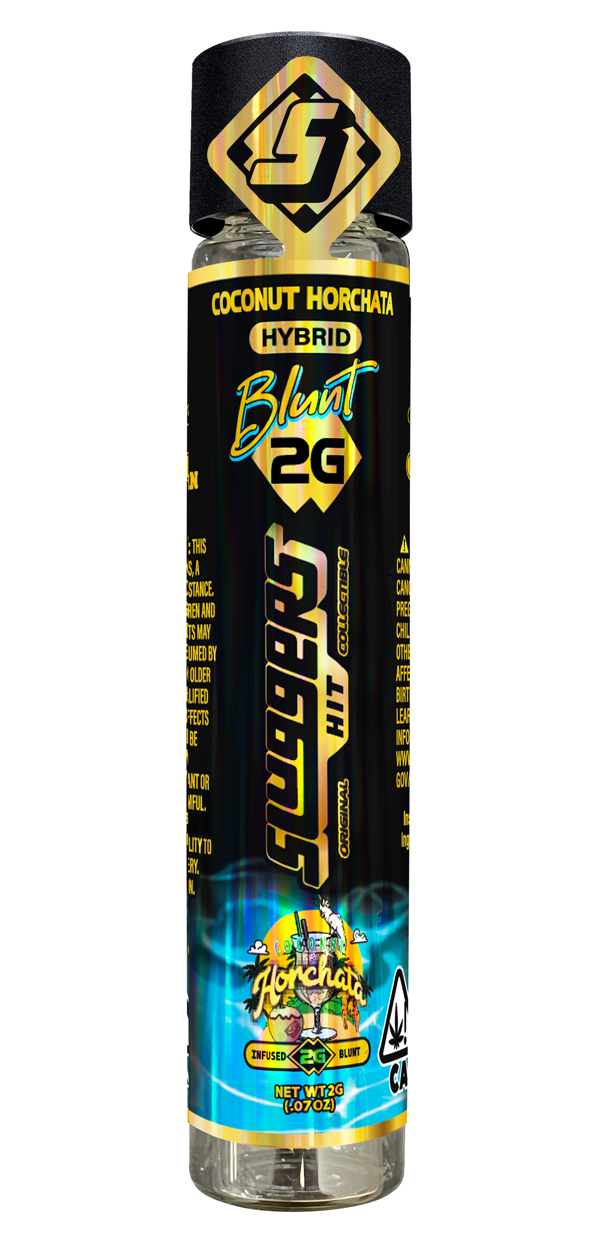 Sluggers presents a 2g Blunt filled with premium flower, rosin, and diamonds, all wrapped in a hemp leaf and tipped with a corn husk filter, providing a floral, fruity, and creamy experience.