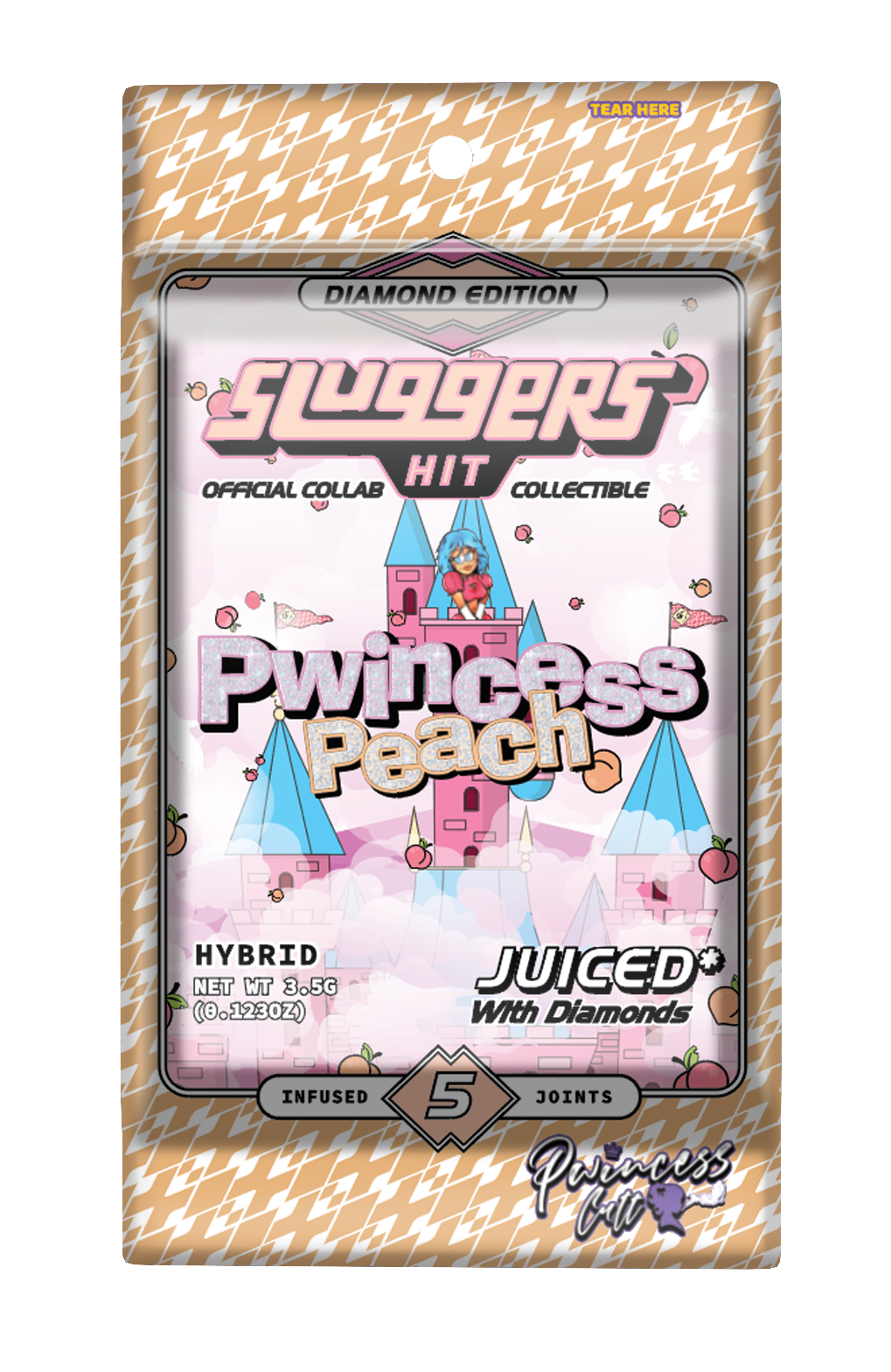 Savor the bouncing, immersive sensations and flavors of this 5-pack of Pwincess Peach. Each drag unveils a delightful blend of sweet and gassy notes, perfectly complemented by the premium flower, solventless hash, liquid diamonds, and diamond coating.